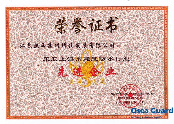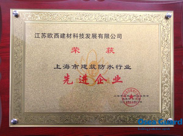 歐西建科獲上海市建筑防水行業“先進企業”榮譽稱號