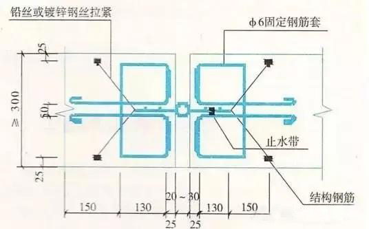 5、施工縫采用中埋止水帶時,應確保止水帶位置準確、固定牢固。