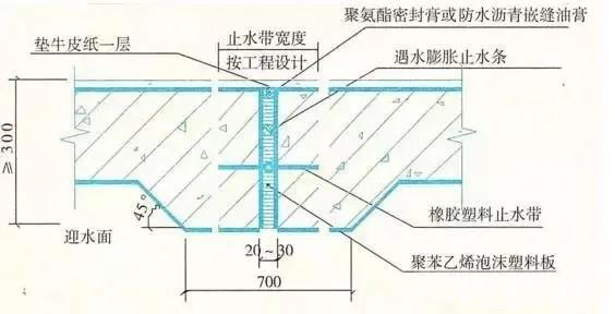 1、防水混凝土應連續澆筑,需要留設施工縫時,墻體水平施工縫應留在高出底板表面不小于300mm的墻體上;拱(板)墻結合的水平施工縫宜留在拱(板)墻接縫線以下150mm~300mm處;墻體有預留孔洞時,施工縫距孔洞邊緣不宜小于300mm。垂直施工縫應避開地下水和裂隙水較多的地段,并宜與變形縫相結合。