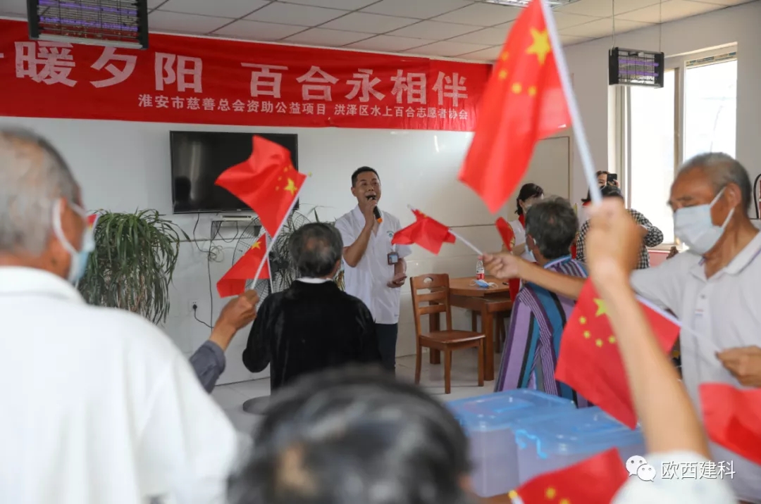 金風送爽,丹桂飄香,國慶將至,普天同慶。近日,江蘇歐西建材科技發展有限公司攜手淮安市洪澤區水上百合志愿者協會、區發改委黨總支、區朱壩街道社區衛生服務中心及愛心志愿者們前往朱壩街道敬老院看望慰問生活在這里的老人,開展了“敬愛老人 奉獻愛心”慰問活動。 歐西及發改委志愿者們為老人們送去了慰問品和防疫物資,并送上美好祝福。在親切的祝福問候聲中,讓每一位老人感受到了家庭般的溫暖,臉上綻開了幸福的笑容。現場醫護人員不僅為老人們一個個進行體檢,還給他們普及慢性病防治知識。